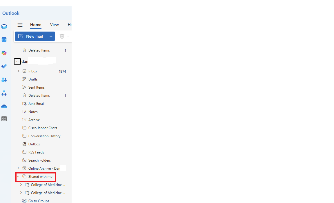 To access a shared mailbox in the “New” Outlook, look for the ‘Shared with me’ folder on the left hand navigation pane. Expand it and check if the shared mailbox is there already, if not right click and select ‘add shared folder or mailbox’, a dialog window will appearing letting you enter the mailbox you wish to add.